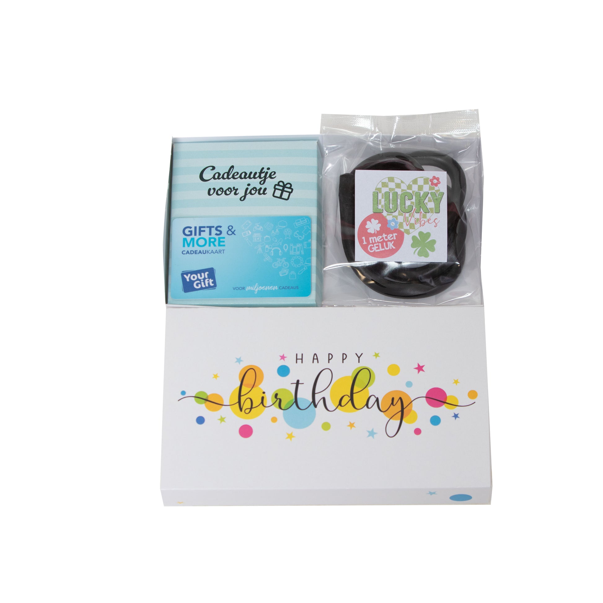 Verras een speciaal iemand speciaal met een metertje geluk, perfect voor een feestelijke verjaardag! Geschenkgeven.nl presenteert "Een meter geluk - verjaardag kleurrijk", een uniek geschenk om iemand een extra dosis geluk te geven. Ideaal verpakt om direct cadeau te doen met een vrolijke verjaardagsomslag.