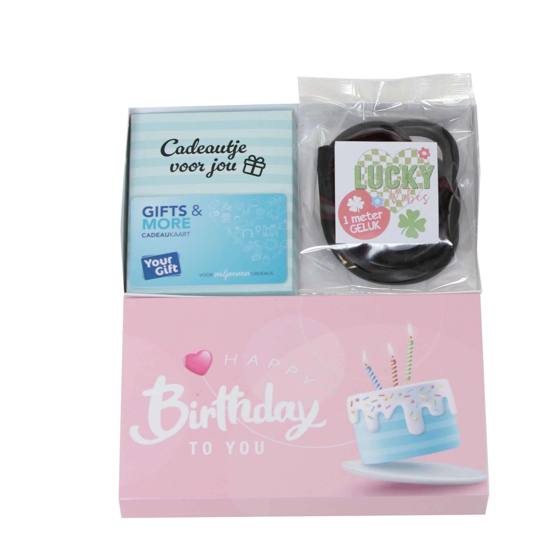 Breng een glimlach op het gezicht van je dierbaren met Een meter geluk - verjaardag Roze van Geschenkgeven.nl. Perfect om iemand te verrassen op diens speciale dag, deze unieke verjaardagscadeaubox biedt meer dan alleen een verrassing: het is een ervaring om niet te vergeten! Een stijlvol geheel, prachtig verpakt en klaar om cadeau te geven.