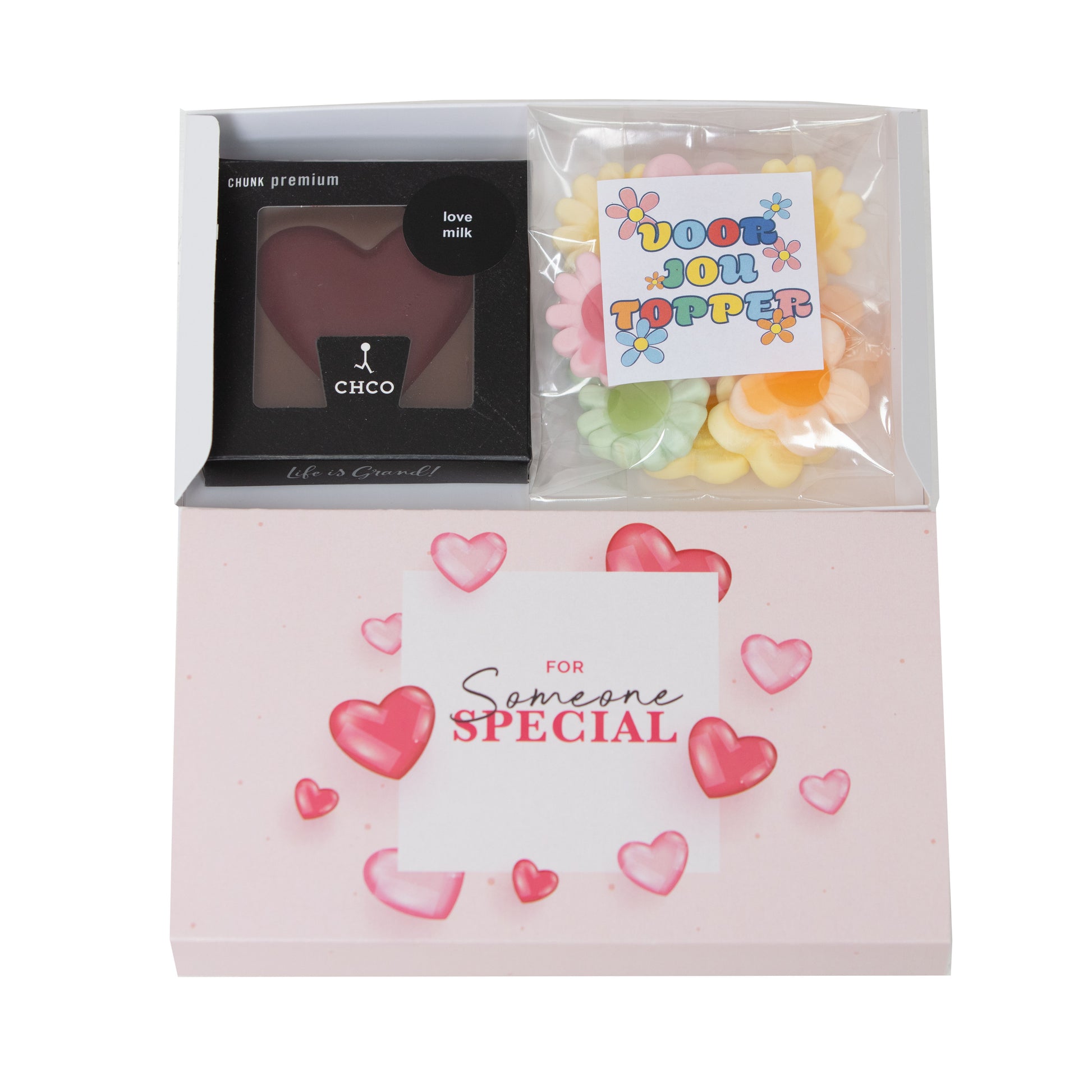 Verras een bijzonder persoon in jouw leven met de "Topper" giftbox van Geschenkgeven.nl. Deze zorgvuldig samengestelde box brengt een glimlach op ieders gezicht met zijn heerlijke traktaties. Perfect verpakt in een liefdevolle geschenkverpakking, klaar om direct te geven.