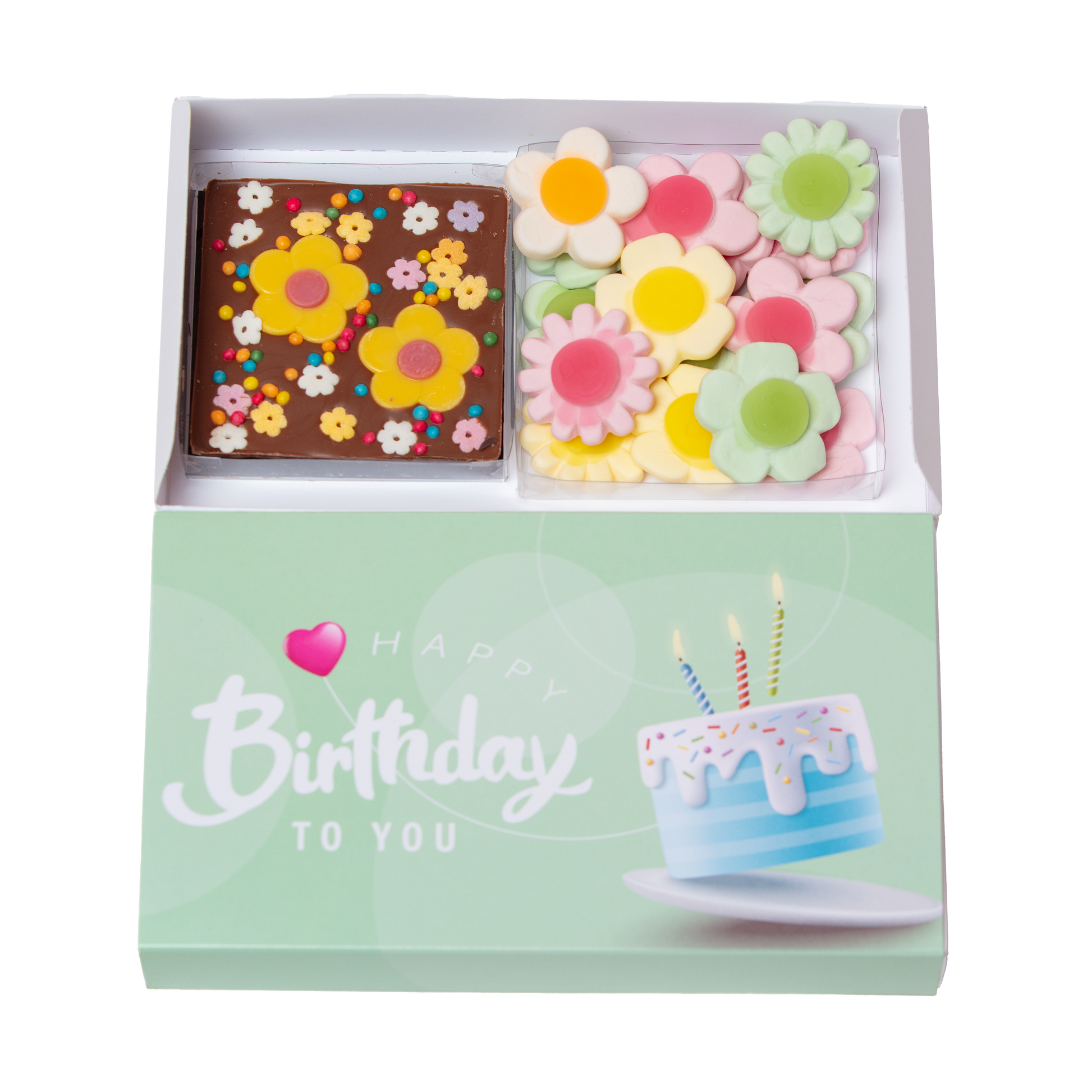 Verras de jarige met de "Verrukkelijk verjaardagswensen - Groen" van Geschenkgeven.nl, een heerlijke traktatie die zintuigen prikkelt! Deze feestelijke box combineert zoetigheid met een persoonlijk tintje, perfect voor elke verjaardag. Zorgvuldig verpakt, klaar om direct cadeau te geven.
